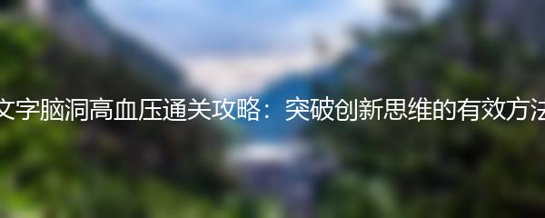 文字脑洞高血压通关攻略:突破创新思维的有效方法