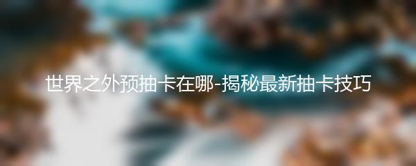 世界之外预抽卡在哪-揭秘最新抽卡技巧
