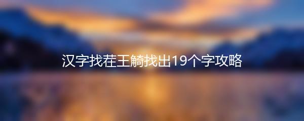 以上就是为大家带来的《汉字找茬王觭找出19个字攻略》。希望这些攻略对您在游戏中有所帮助!开始挑战吧,成为汉字找茬王觭的冠军!