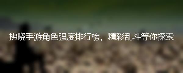 拂晓手游角色强度排行榜,精彩乱斗等你探索