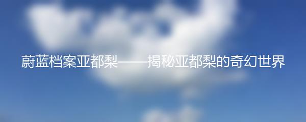 蔚蓝档案亚都梨——揭秘亚都梨的奇幻世界