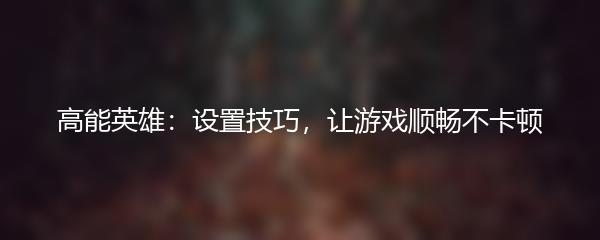高能英雄:设置技巧,让游戏顺畅不卡顿