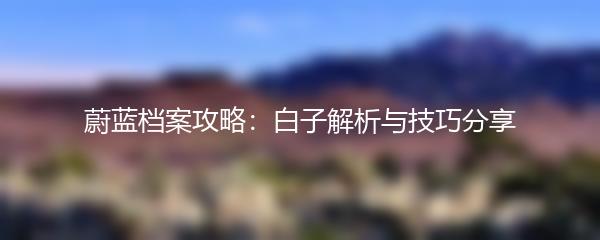 蔚蓝档案攻略:白子解析与技巧分享