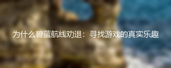 以上就是为大家带来的"为什么碧蓝航线劝退:寻找游戏的真实乐趣"。希望通过对碧蓝航线劝退原因的探讨,能够给玩家们带来一些新的思考和选择。