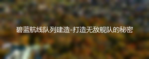 以上就是为大家带来的《碧蓝航线队列建造-打造无敌舰队的秘密》。希望本文对您在碧蓝航线游戏中的队列建造有所帮助。