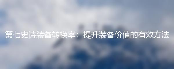 第七史诗装备转换率是指将一件第七史诗装备转换为其他装备的比例。在游戏中,第七史诗装备通常是玩家们努力追求的目标之一。然而,有时候我们可能会获得一些不适合自己职业或者不符合当前需求的第七史诗装备。这时候,了解如何高效地将其转换为其他装备是非常重要的。
