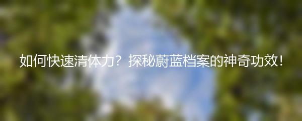 随着现代人生活节奏的加快,人们越来越注重如何快速恢复体力。蔚蓝档案作为一种新兴的健康养生方式,给我们带来了全新的认知。本文将深入探讨蔚蓝档案的神奇功效,并为大家介绍如何快速清体力,帮助你迅速恢复活力。