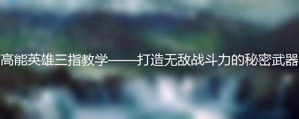 高能英雄三指教学——打造无敌战斗力的秘密武器