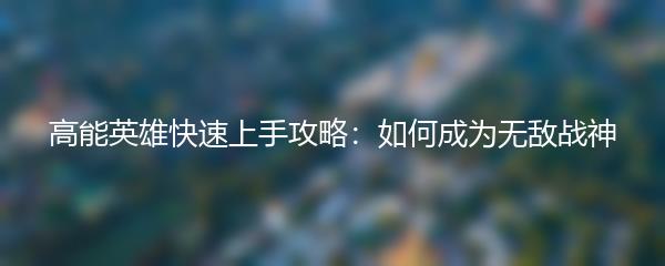 你是否也曾梦想过成为高能英雄,拥有无敌的力量和战斗技巧?现在,不再是梦想!通过本文的高能英雄快速上手攻略,你将学会如何成为一位真正的无敌战神。
