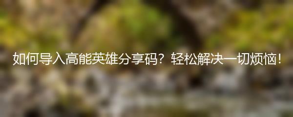 如何导入高能英雄分享码?轻松解决一切烦恼!