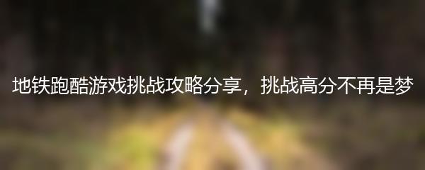 地铁跑酷游戏挑战攻略分享,挑战高分不再是梦