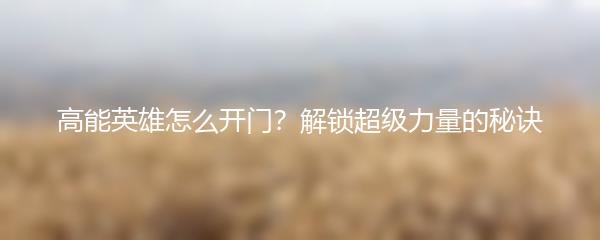 大家都喜欢英雄,那些拥有超能力、挑战极限的高能英雄总是能引起我们的兴趣和憧憬。而他们展现的超级力量更是吸引人的关键。那么,究竟高能英雄怎么开门?如何解锁那些超乎寻常的能力呢?让我们一起揭秘这个问题。