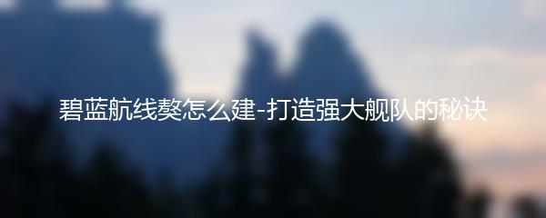 碧蓝航线獒怎么建-打造强大舰队的秘诀