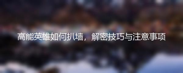 以上就是为大家带来的高能英雄如何扒墙的技巧与注意事项。扒墙是高能英雄必备的基础技能之一,熟练掌握扒墙技巧可以帮助英雄们在战斗中更加灵活和隐蔽。希望通过本文的介绍,能够对大家有所帮助,提高扒墙的效率和安全性。