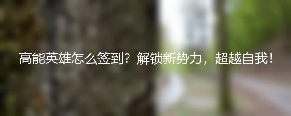 高能英雄怎么签到?通过设立明确目标、坚持每天签到、不断学习、锻炼身体和发挥潜能,你就能解锁新势力,超越自我,成为一位真正的高能英雄!相信自己,勇往直前!