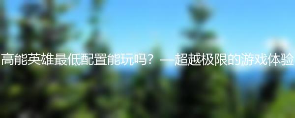 高能英雄最低配置能玩吗?—超越极限的游戏体验
