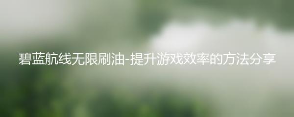 碧蓝航线无限刷油-提升游戏效率的方法分享
