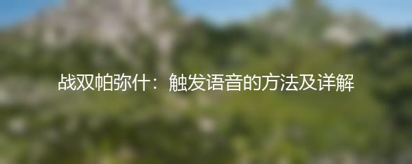 以上就是战双帕弥什的触发语音的方法及详解。通过完成特定任务、战斗胜利、触发特殊条件、累积经验和与帕弥什互动,你将能够体验到更多战双帕弥什的语音。一起来与帕弥什一同冒险吧!