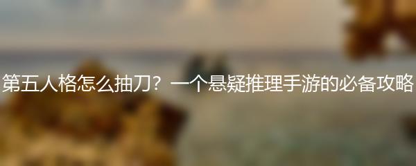 第五人格是一款备受推崇的悬疑推理手游,全新的推理手法和精致的画面为玩家们带来了独特的游戏体验。在这个游戏中,抽刀是非常重要的一部分,它决定了你在游戏中的实力和战斗力。那么,我们该如何抽刀呢?下面就为大家详细介绍。
