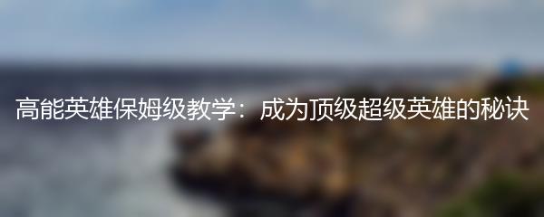 高能英雄保姆级教学:成为顶级超级英雄的秘诀
