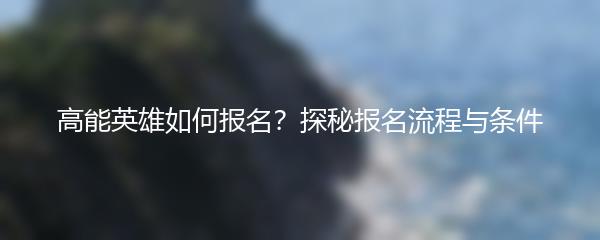 高能英雄如何报名?这是许多热衷于成为超级英雄的人心中的疑问。成为一名高能英雄不仅需要拥有超凡的能力,还需要通过严格的选拔和培训。本文将揭秘高能英雄报名流程与条件,为您详细解答,助您一步步实现英雄梦!