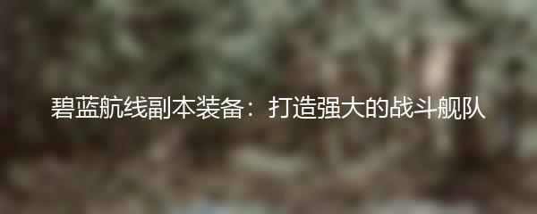 碧蓝航线副本装备:打造强大的战斗舰队