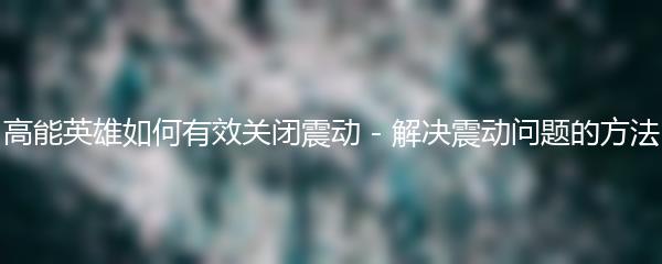 高能英雄如何有效关闭震动 - 解决震动问题的方法