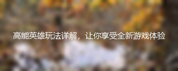 最近推出的一款新游戏引起了广大玩家的轰动,这款游戏名叫《高能英雄》,它为我们带来了全新的游戏体验。那么,到底什么是高能英雄玩法?让我们来一探究竟。