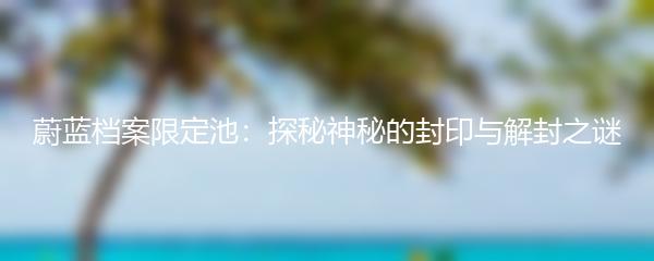 蔚蓝档案限定池:探秘神秘的封印与解封之谜