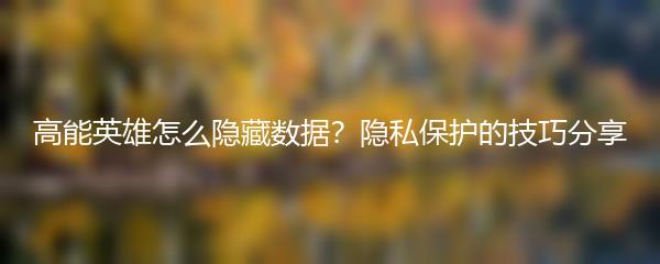 高能英雄怎么隐藏数据?隐私保护的技巧分享