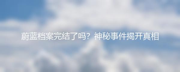 蔚蓝档案,一个引发广泛关注的神秘事件,一直扑朔迷离。然而,近日传来消息,有关该案件是否终结的疑虑开始浮出水面。多年来,这个事件牵动着人们的心弦,无数的疑团和揣测让人无法释怀。