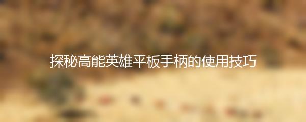 高能英雄平板怎么用手柄?探秘高能英雄平板手柄的使用技巧,让你的游戏体验更加震撼。无需书名号,让我们一起来了解如何利用手柄玩转高能英雄平板。