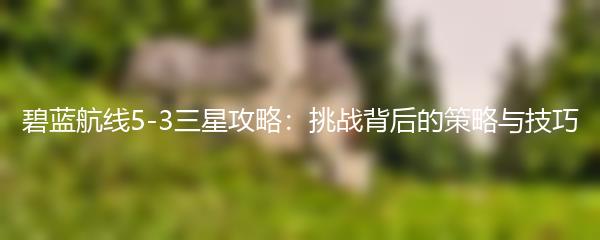 碧蓝航线5-3三星攻略:挑战背后的策略与技巧