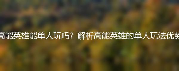 高能英雄能单人玩吗?解析高能英雄的单人玩法优势