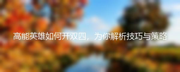 以上就是为大家带来的如何开双四的技巧与策略。通过巧用技能连携、把握节奏与位置、有效的装备选择、灵活运用团队配合以及时刻保持冷静,你一定可以在高能英雄的战场上取得更大的胜利。