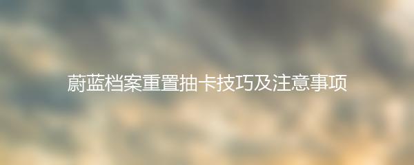 蔚蓝档案是一款受欢迎的卡牌游戏,玩家可以通过重置抽卡来获取更好的卡牌。下面将介绍一些蔚蓝档案重置抽卡的技巧和注意事项,帮助玩家更好地进行抽卡。