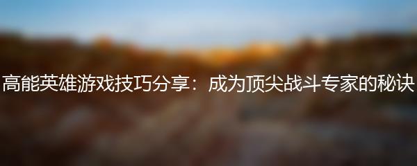 高能英雄游戏技巧分享:成为顶尖战斗专家的秘诀