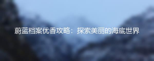 蔚蓝档案优香攻略:探索美丽的海底世界