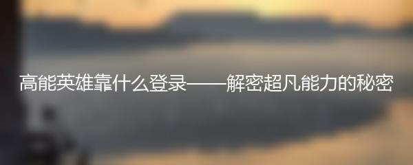 高能英雄靠什么登录?我们将揭秘超凡能力背后的秘密。在这篇文章中,我们将详细讨论高能英雄如何克服困难,挑战自我,以及他们是如何获得超凡能力的。准备好进入超凡的世界了吗?