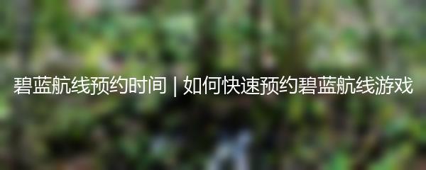 碧蓝航线预约时间 | 如何快速预约碧蓝航线游戏
