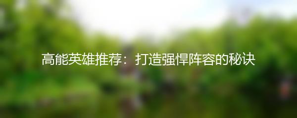 以上就是为大家带来的“高能英雄推荐:打造强悍阵容的秘诀”。通过合理搭配高能英雄阵容,你将能在游戏中成为战场上的强者,向胜利迈进。