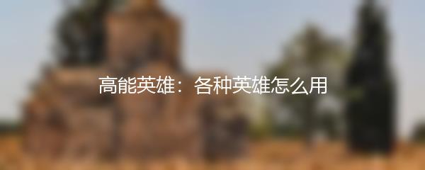 以上就是为大家介绍的高能英雄的各种使用方法。玩家可以根据自己的游戏风格和团队需要选择适合的英雄,并熟练掌握他们的技能和特点。只有合理运用英雄的技能和策略,才能在游戏中取得胜利。