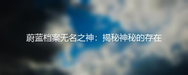 以上就是为大家带来的《蔚蓝档案无名之神:揭秘神秘的存在》。通过对蔚蓝档案无名之神的探索,我们能够更好地理解超自然现象和未知力量在我们生活中的重要性。