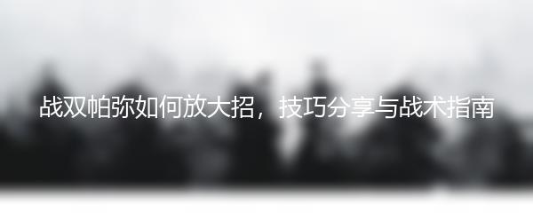 在战双帕弥中,放大招是非常重要的技能,它可以造成大量伤害,并且在战斗中起到决定性的作用。下面是一些战双帕弥放大招的技巧与战术指南: