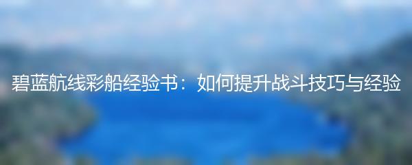 碧蓝航线彩船经验书:如何提升战斗技巧与经验