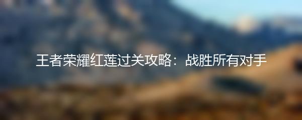以上就是为大家带来的王者荣耀红莲过关攻略。通过选择合适的英雄、熟悉地图和游戏规则、准确使用红莲、与队友合作以及不断磨练技术,相信每个玩家都可以战胜所有对手,在游戏中取得辉煌的战绩。