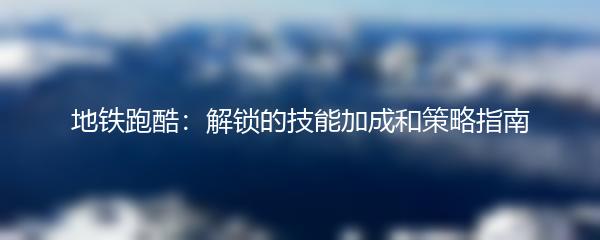 以上就是为大家带来地铁跑酷技能加成和策略指南的内容总结。