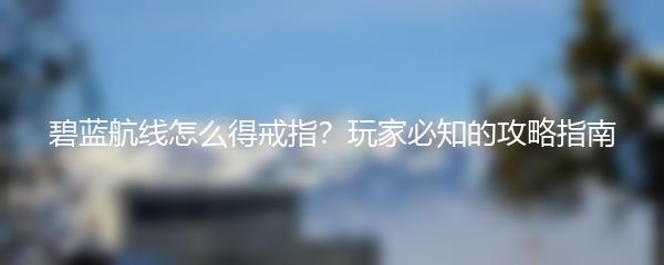 碧蓝航线怎么得戒指?玩家必知的攻略指南