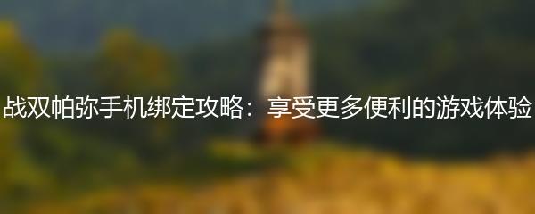 战双帕弥手机绑定攻略:享受更多便利的游戏体验