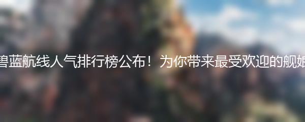 碧蓝航线人气排行榜公布!为你带来最受欢迎的舰娘
